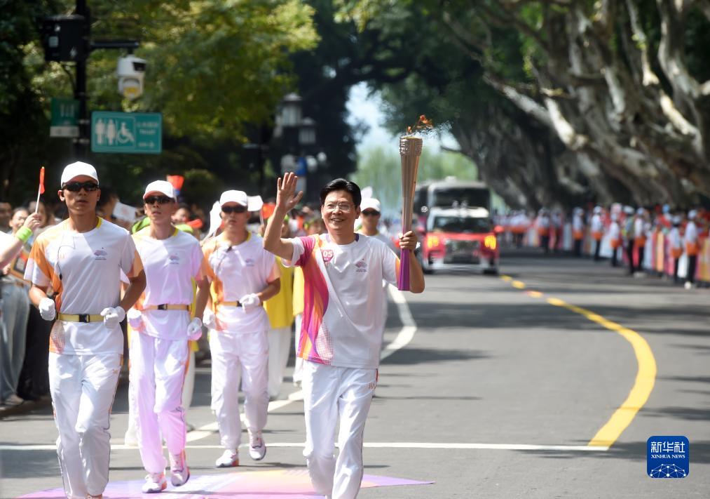 當日,杭州亞運會火炬傳遞在杭州西湖涌金公園廣場啟動,共有106棒火炬手參與當日傳遞。