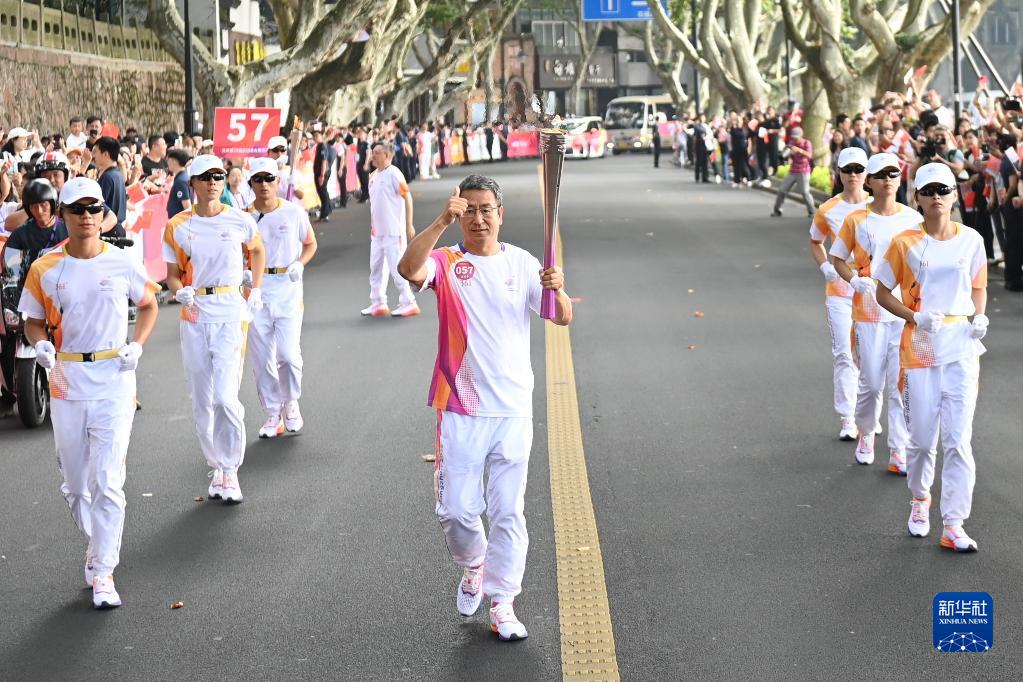 當日,杭州亞運會火炬傳遞在杭州西湖涌金公園廣場啟動,共有106棒火炬手參與當日傳遞。