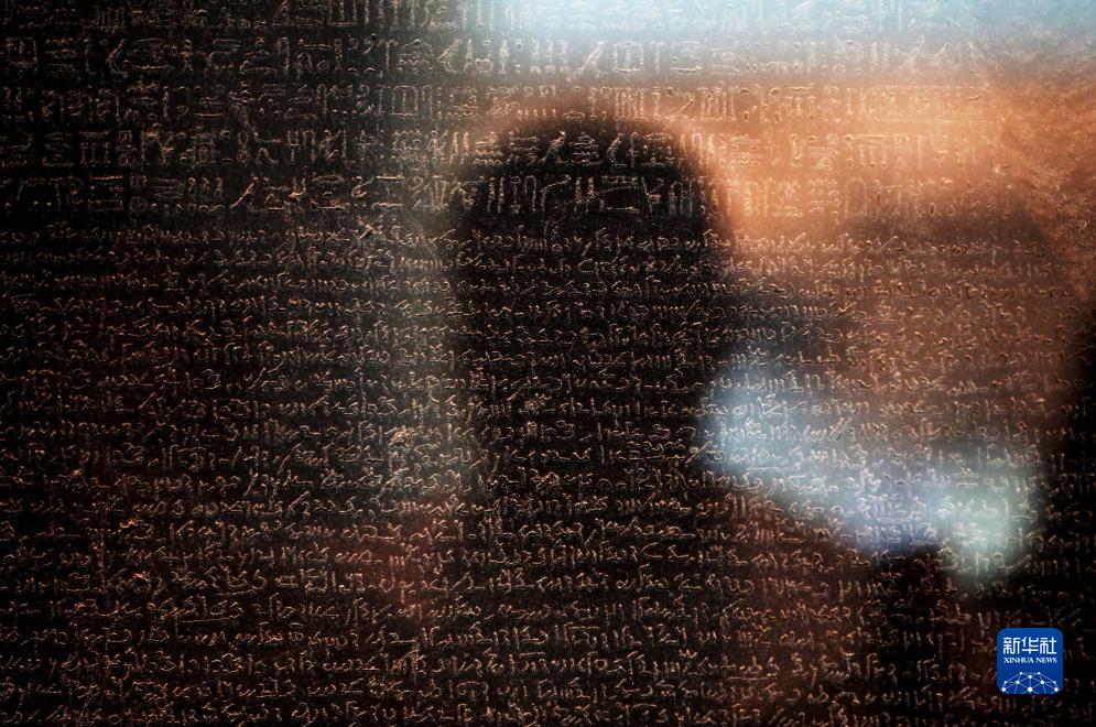 9月7日,人們在英國倫敦大英博物館參觀羅塞塔石碑。