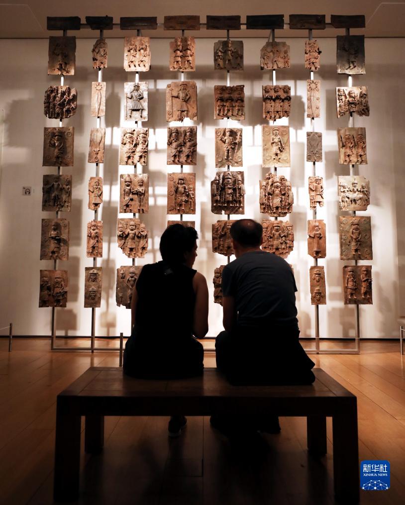 9月7日,人們在英國倫敦大英博物館參觀貝寧青銅器。