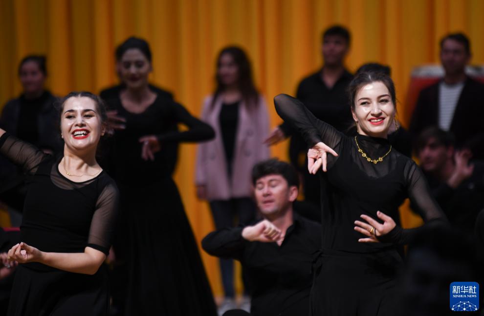 新疆塔縣文工團(tuán)舞蹈演員在排練鷹舞節(jié)目《傳承》(9月4日攝)。新華社記者 王菲 攝
