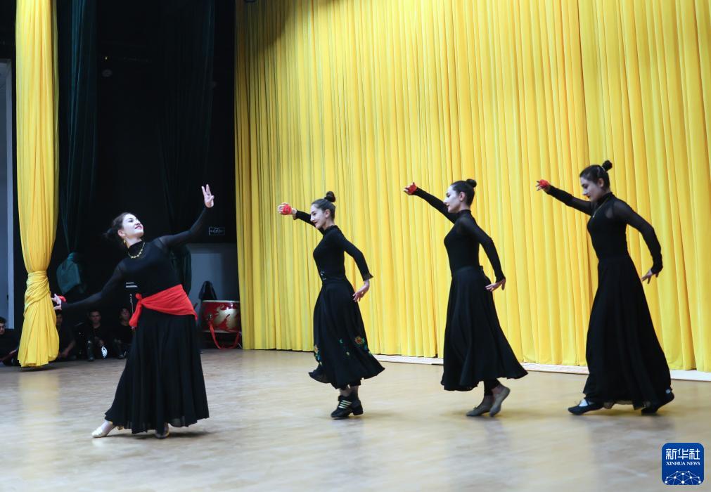 新疆塔縣文工團(tuán)舞蹈演員在排練《花兒為什么這樣紅》(9月4日攝)。新華社記者 蘭紅光 攝