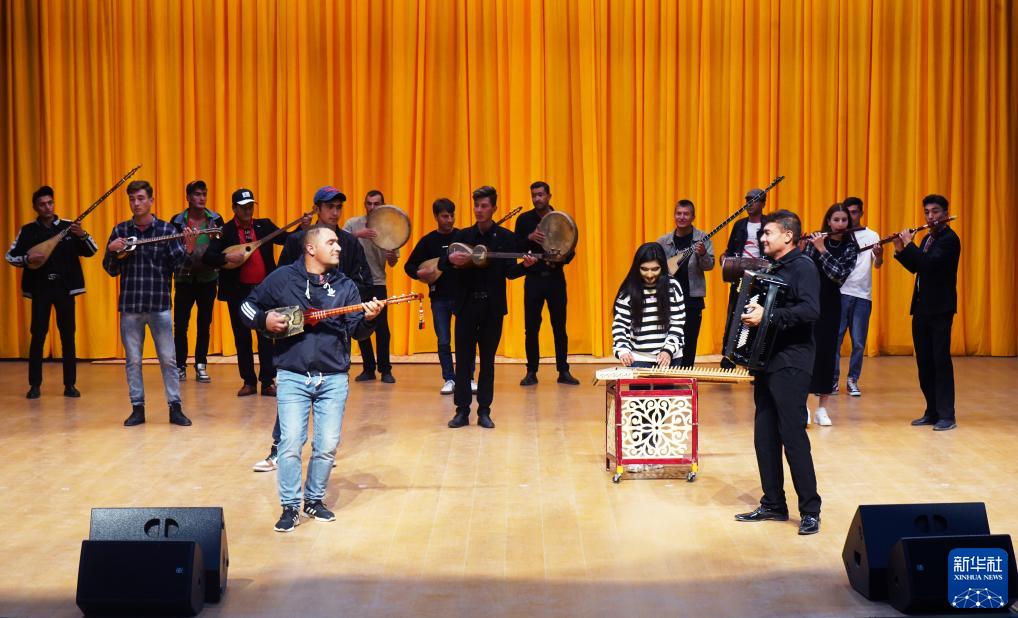 新疆塔縣文工團樂手在排練(9月4日攝)。新華社記者 金皓原 攝