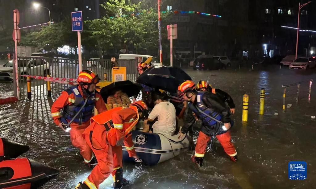 9月7日,深圳市消防救援支隊消防救援人員在龍崗區平湖街道福星小區幫助市民轉移。