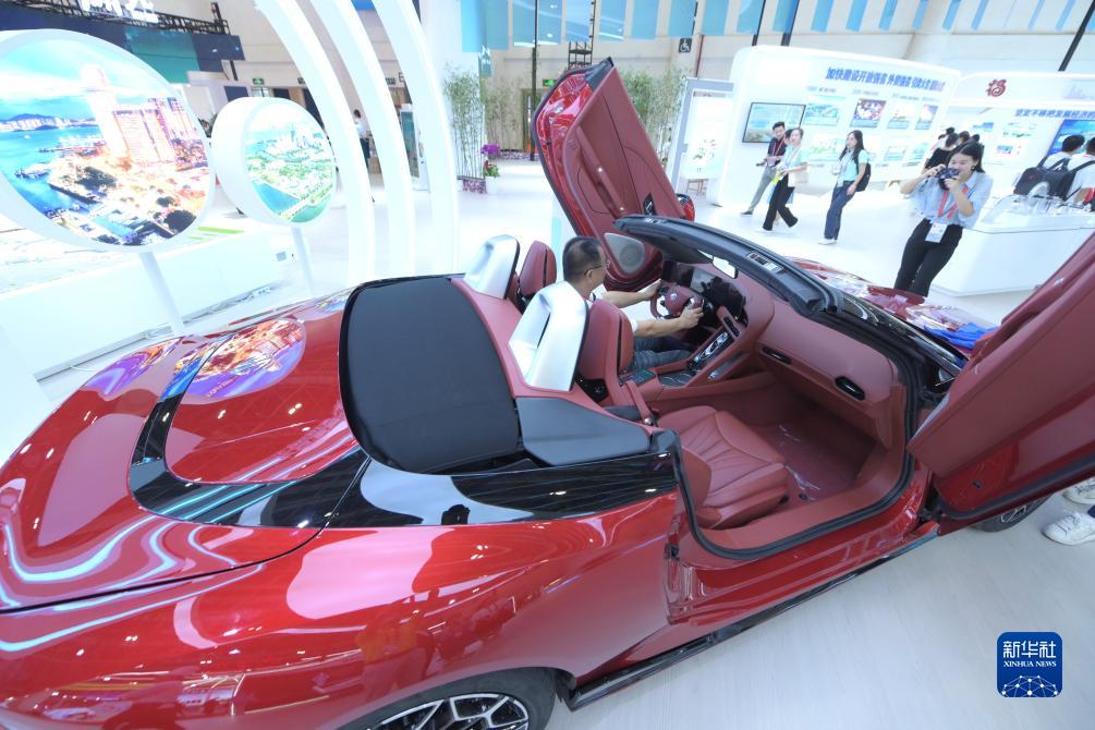 9月8日拍攝的在福建展區(qū)展出的新能源電動汽車。