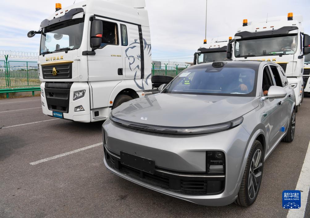 這是在霍爾果斯公路口岸等待出口的國產新能源汽車(9月6日攝)。