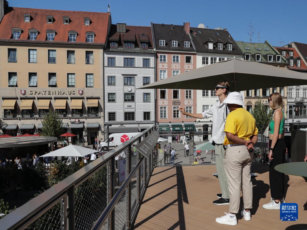 9月8日,一名參觀者在德國慕尼黑國際車展城市公共展示區(qū)體驗AR看車。