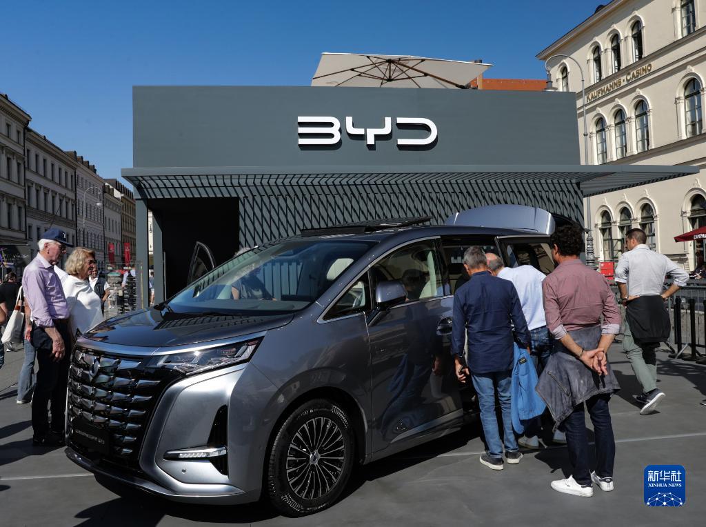 9月8日,人們在德國慕尼黑國際車展城市公共展示區的比亞迪展區參觀。