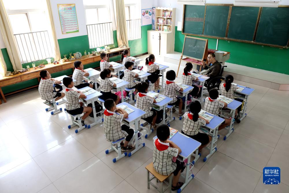 今年秋季開學,除了四年級英語、美術課外,楊季剛還負責一、二年級書法和閱讀課教學,參與學校節假日值班等工作。他用積攢的獎金和慰問金購買了學生們喜愛的讀物,建立“楊老師流動圖書角”,設立讀書獎勵基金,激勵學生養成愛讀書、讀好書的習慣。新華社發(孫中喆攝)