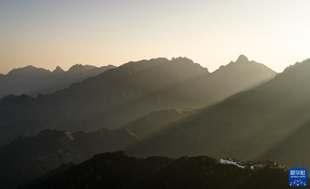 9月9日拍攝的九華山清晨日出時分景色(無人機照片)。