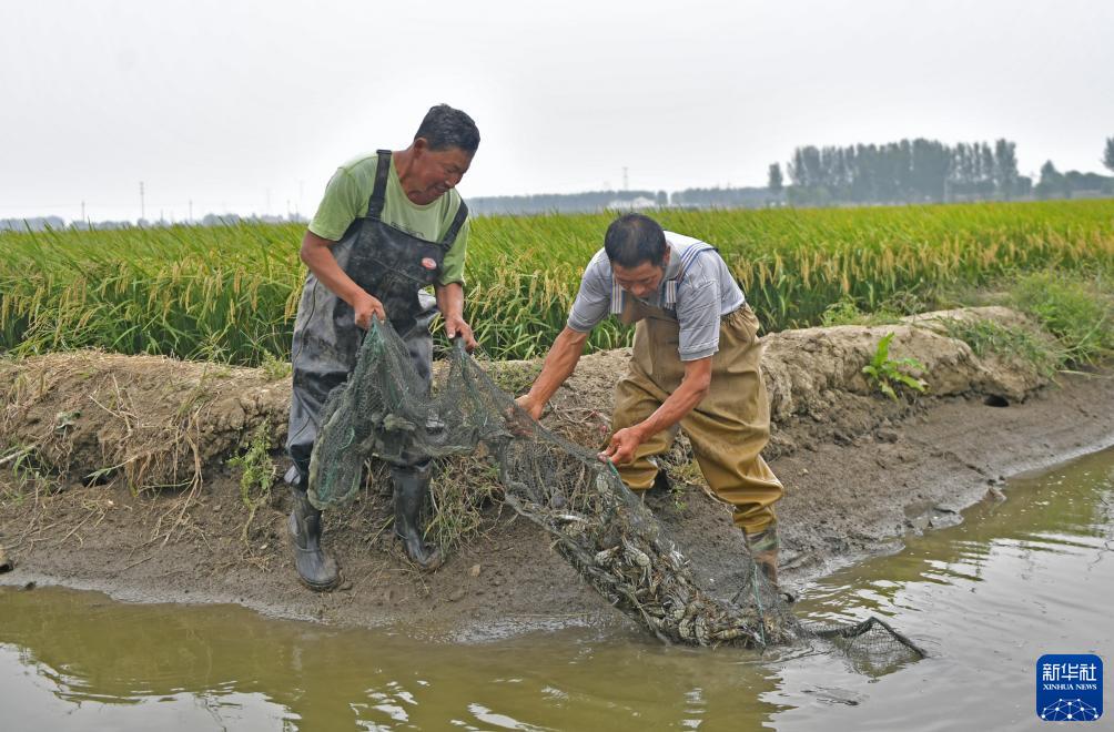 近日,沈陽市沈北新區興隆臺街道青年農場稻田里混養的河蟹迎來豐收,預計9月下旬,蟹田水稻也將成熟收獲。一水多用、一田雙收,稻蟹共養成為農戶增收致富的新渠道。