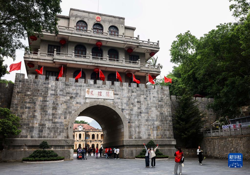 5月19日,游客在廣西憑祥友誼關合影留念。