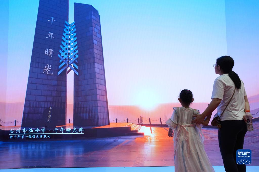 9月9日,一對母女在大道之行——“八八戰略”實施20周年大型主題展覽上觀看展示浙江建設成就的視頻。