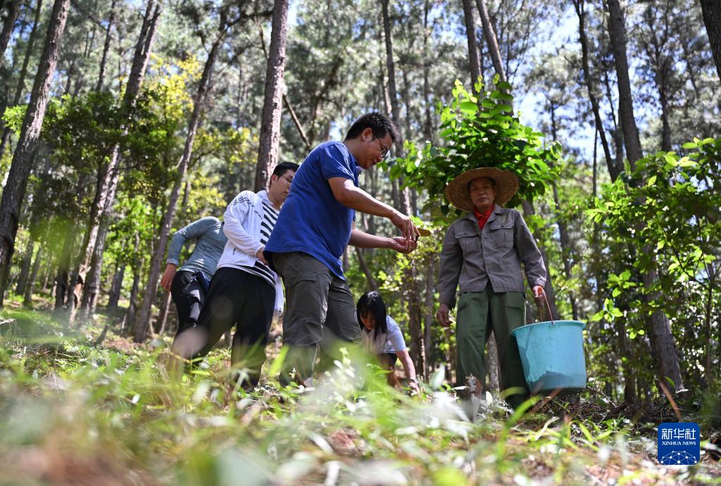 9月6日,曾念開(中)在指導(dǎo)海南省保亭黎族苗族自治縣毛感鄉(xiāng)的農(nóng)民種植靈芝。