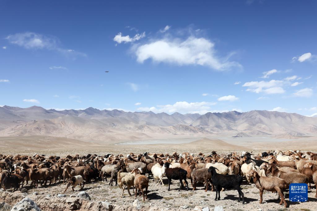 在“冰川之父”慕士塔格峰腳下,新疆塔什庫爾干塔吉克自治縣塔合曼鄉境內的一片天然草場吸引周邊鄉村的牧羊人在此放牧。進入秋季以來,草場漸漸泛黃,屹立于遠處的慕士塔格峰和公格爾九別峰在藍天白云的映襯下格外壯美,一幅寧靜悠遠的牧羊圖引人入勝。