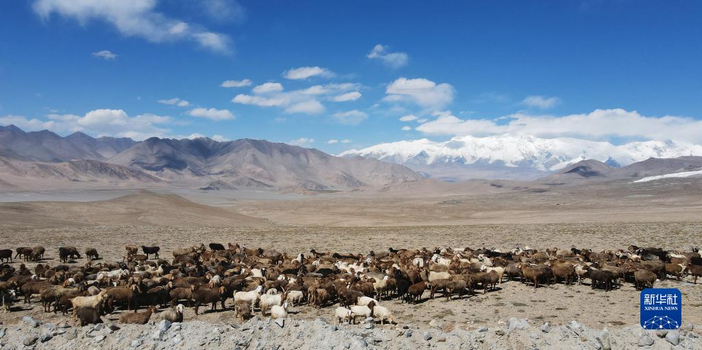 在“冰川之父”慕士塔格峰腳下,新疆塔什庫爾干塔吉克自治縣塔合曼鄉(xiāng)境內(nèi)的一片天然草場吸引周邊鄉(xiāng)村的牧羊人在此放牧。進入秋季以來,草場漸漸泛黃,屹立于遠處的慕士塔格峰和公格爾九別峰在藍天白云的映襯下格外壯美,一幅寧靜悠遠的牧羊圖引人入勝。