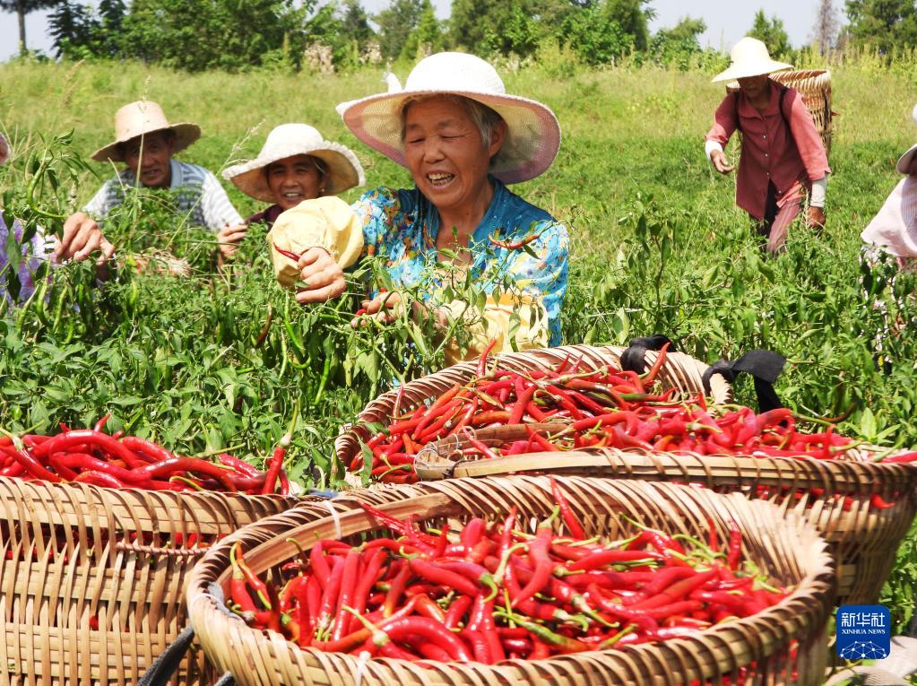 9月10日,村民在四川省達州市渠縣寶城鎮觀龍社區辣椒種植基地采摘紅辣椒。