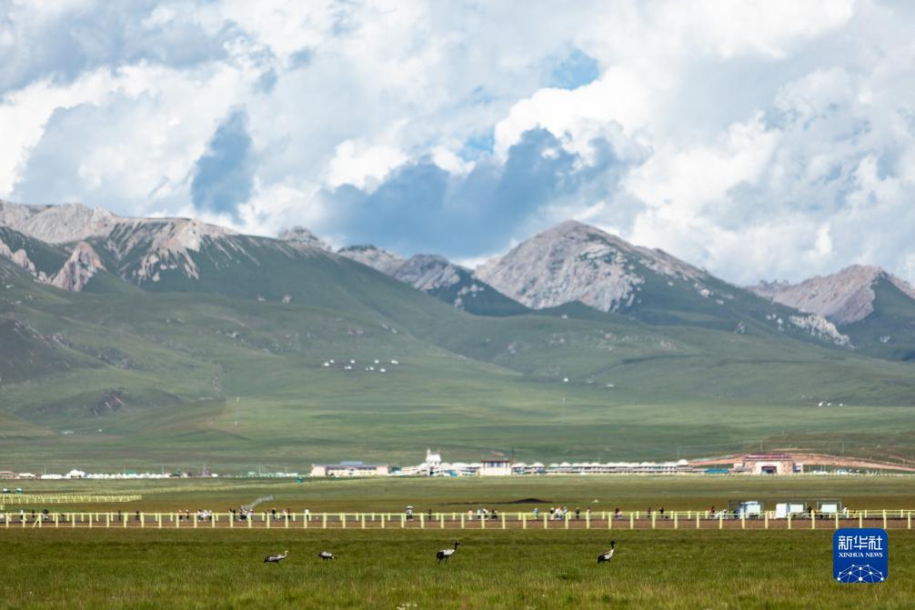 這是8月22日在四川省阿壩藏族羌族自治州若爾蓋縣花湖拍攝的黑頸鶴,目前黑頸鶴種群數(shù)量突破2000只。