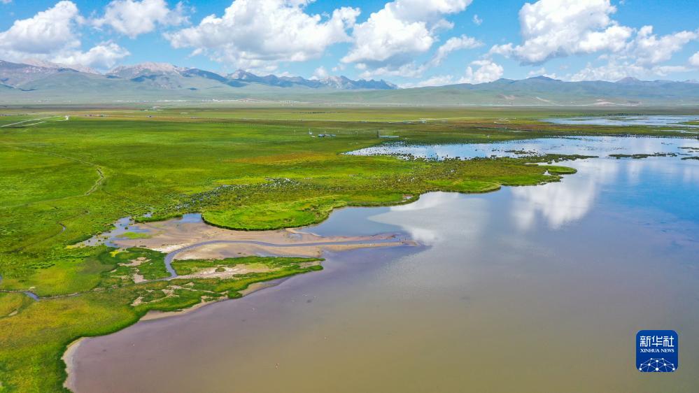 這是8月22日在四川省阿壩藏族羌族自治州若爾蓋縣拍攝的花湖(無人機照片)。