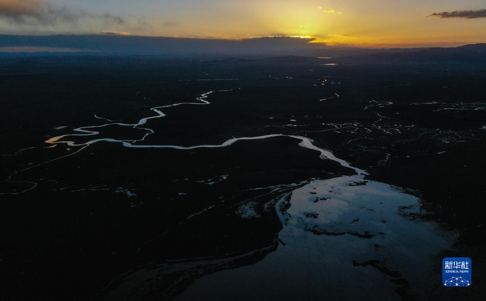 這是8月22日在四川省阿壩藏族羌族自治州若爾蓋縣拍攝的花湖,花湖之水經(jīng)黑河匯入黃河干流(無人機(jī)照片)。