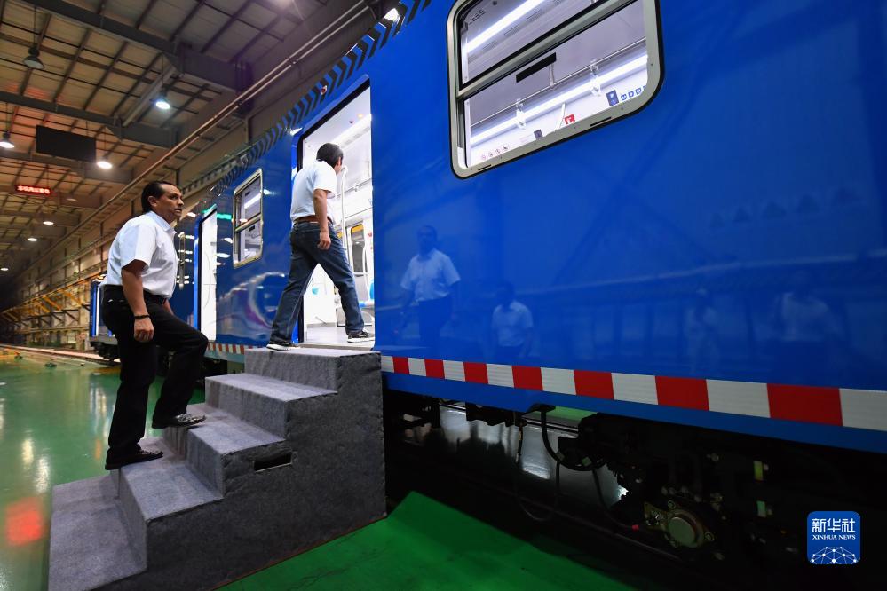 墨西哥來賓準備進入中國中車出口墨西哥城輕軌列車首列車(9月9日攝)。
