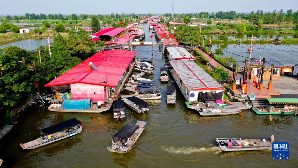 初秋,湖光瀲滟處水鳥掠過,蘆葦隨風飄揚。鳥鳴蛙叫中,讀書聲、歡笑聲伴著搖曳的漁燈,譜成了微山湖上一首美妙的樂曲。