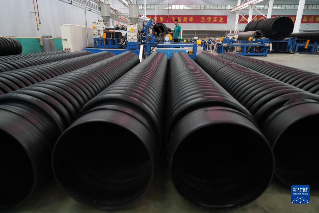 9月10日,河北省柏鄉縣一家管材生產科技型企業的工人在生產線上工作。