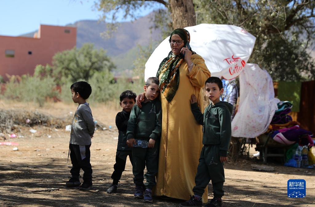 這是9月10日在摩洛哥震中附近的艾米茲米茲村一處臨時安置點拍攝的受災群眾。