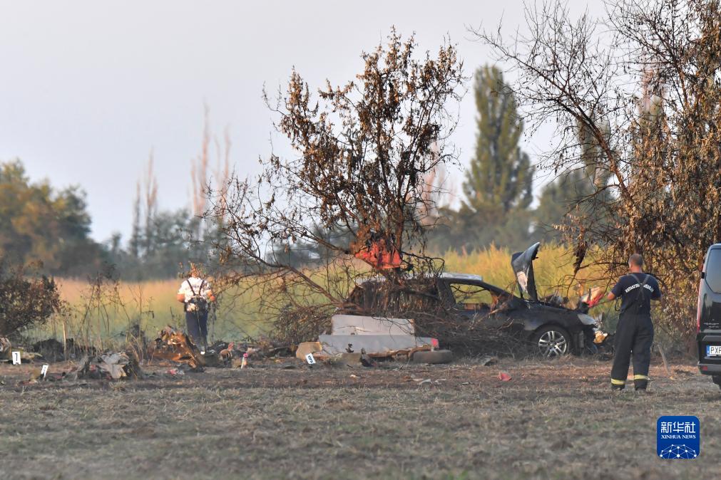 這是9月10日在匈牙利塞克什白堡附近的博爾貢德機場拍攝的飛機墜毀現場。
