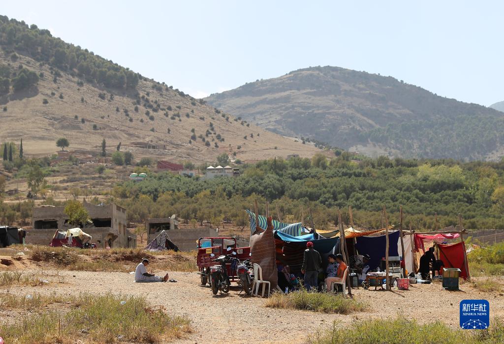 這是9月10日在摩洛哥震中附近的艾米茲米茲村拍攝的一處臨時安置點。