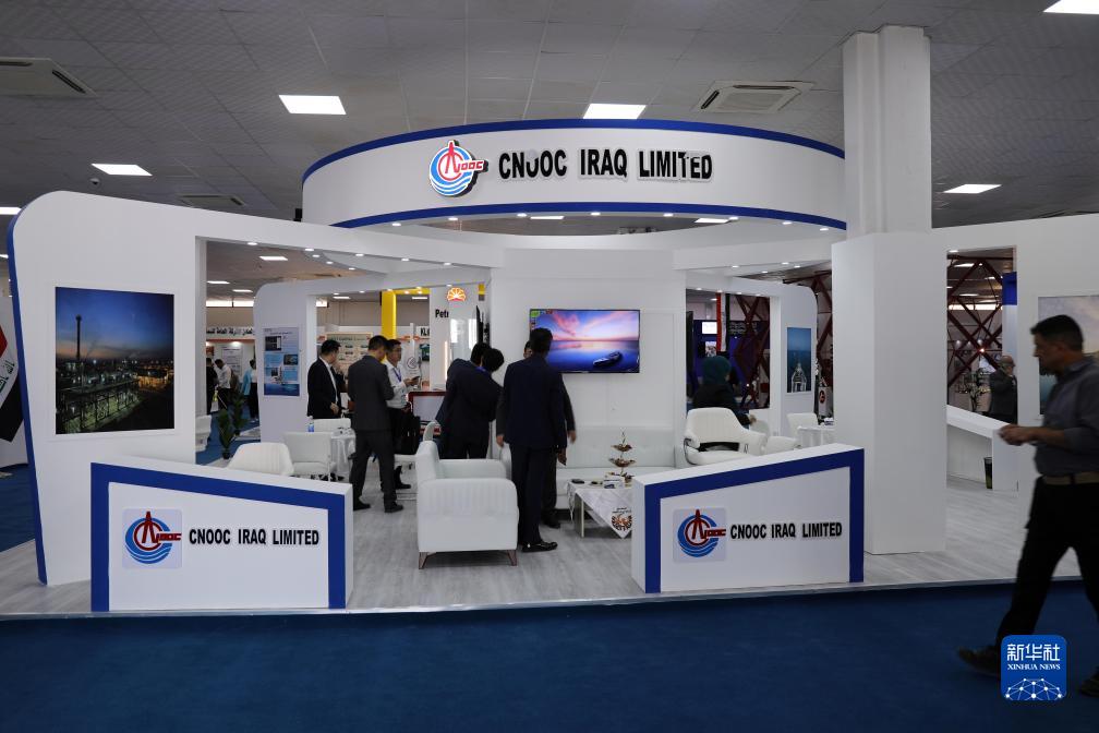 這是9月10日在伊拉克首都巴格達國際會展中心舉行的首屆伊拉克石油項目和許可招標國際會議暨展覽會上拍攝的中國海洋石油集團有限公司展臺。