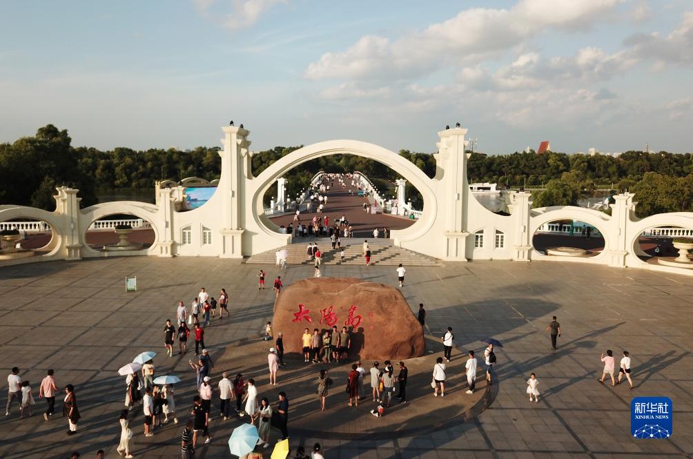 這是7月31日拍攝的太陽(yáng)島景區(qū)的太陽(yáng)石廣場(chǎng)(無(wú)人機(jī)照片)。
