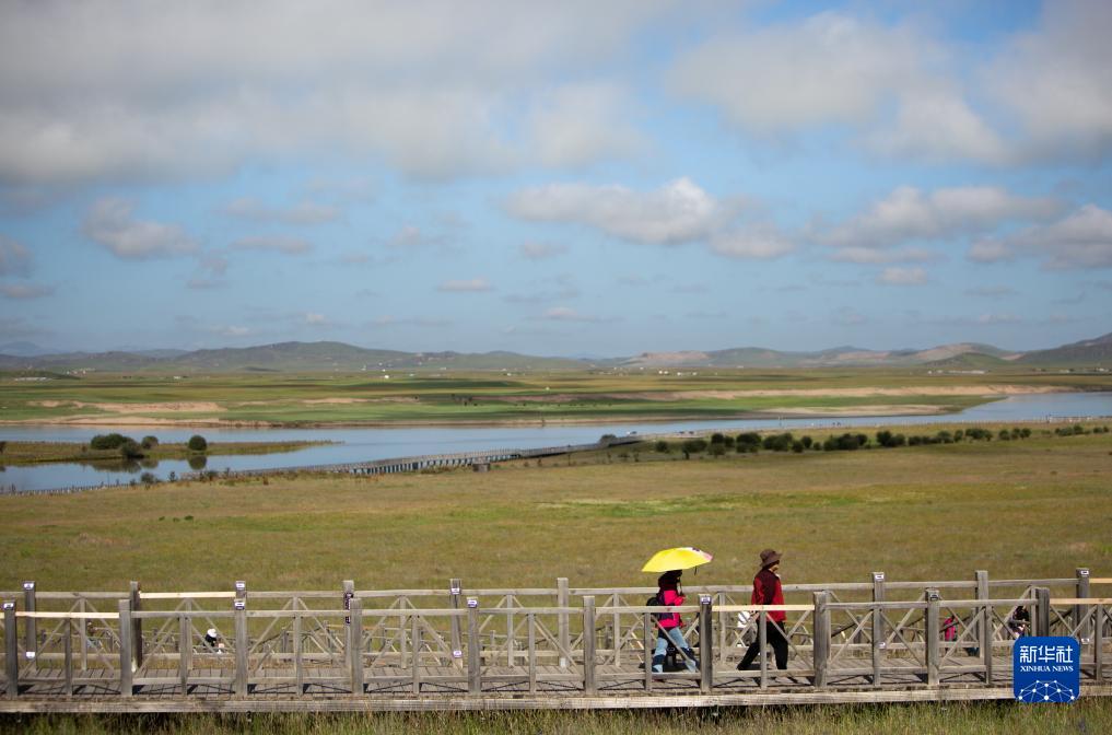 黃河,從巴顏喀拉山的涓涓細流匯聚成浩蕩之勢,一路奔騰澎湃,由甘肅自西向東進入四川。激蕩的黃河在若爾蓋草原駐足流連,在阿壩州若爾蓋縣唐克鎮(zhèn)與白河交匯,河水流向突然折回向西北而去,狀如“S”形,在無邊的綠翠之上勾勒出黃河九曲第一灣。