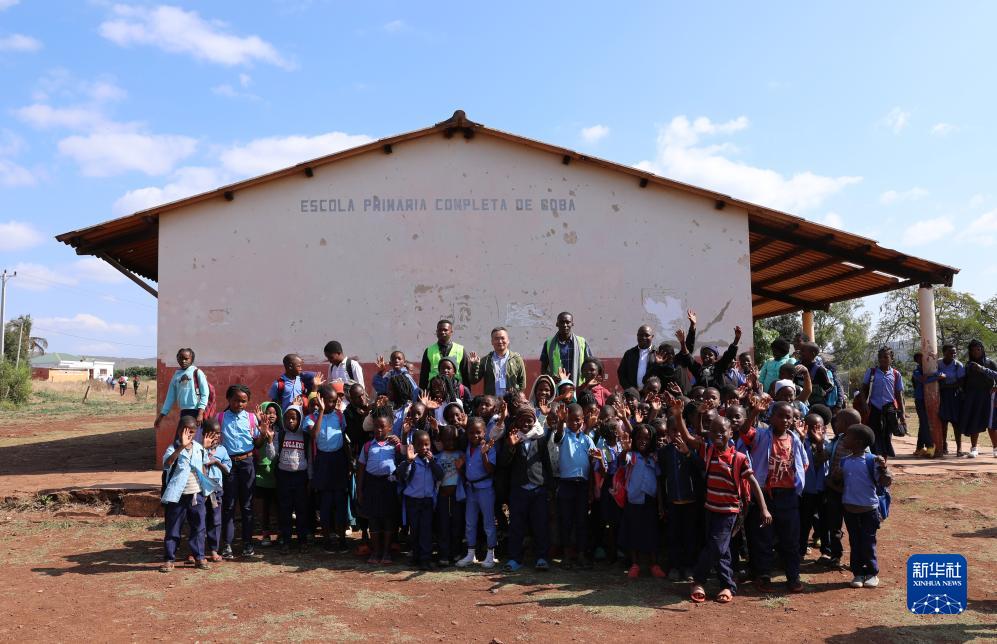 7月26日,瓜達吉亞和同事在莫桑比克馬普托省戈巴村學校與師生合影。