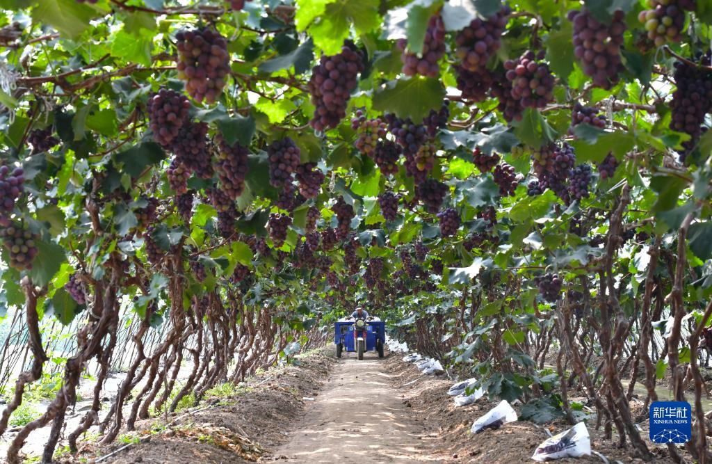 近日,遼寧省燈塔市種植的遼峰葡萄喜迎豐收。燈塔市出產的遼峰葡萄遠近聞名,目前種植面積約1萬畝。當地已形成葡萄培育、種植、銷售、倉儲、加工相關產業鏈,葡萄是當地農民致富增收的特色產業。