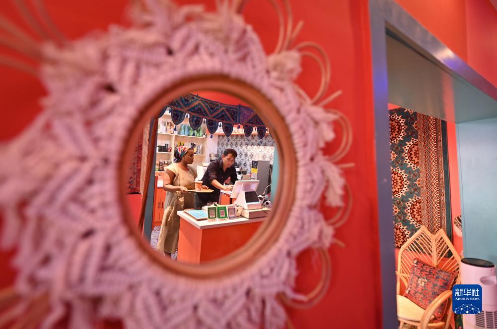 迪力夏提(右)和海迪雅在自家咖啡館內為顧客制作咖啡(9月7日攝)。
