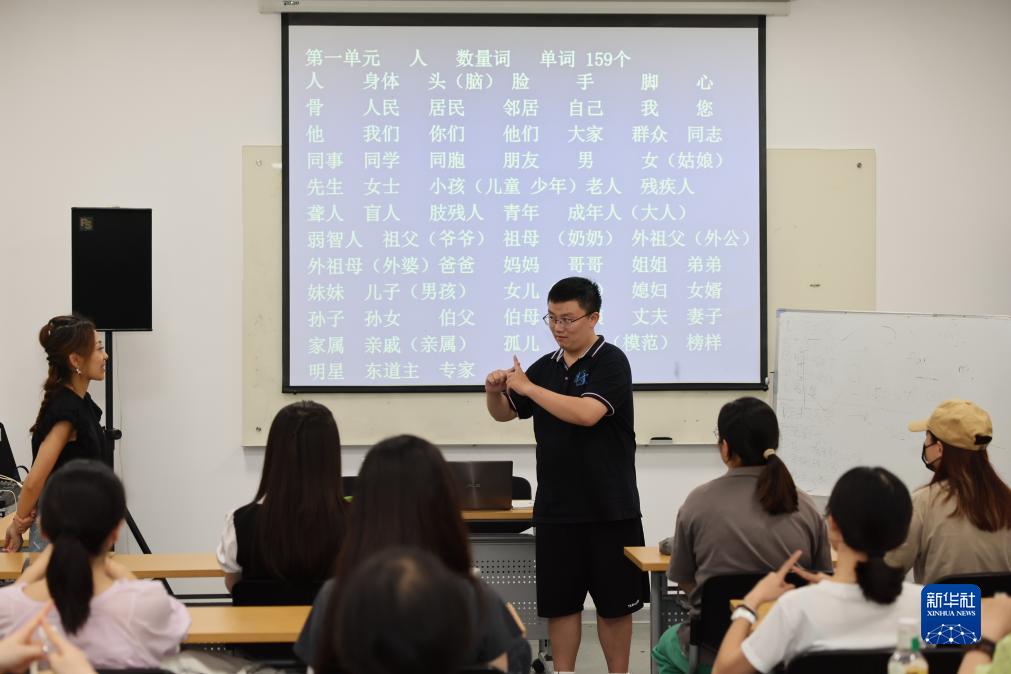 9月11日,在上海市群眾藝術(shù)館,學(xué)員在手語(yǔ)課程后展示學(xué)習(xí)成果。
