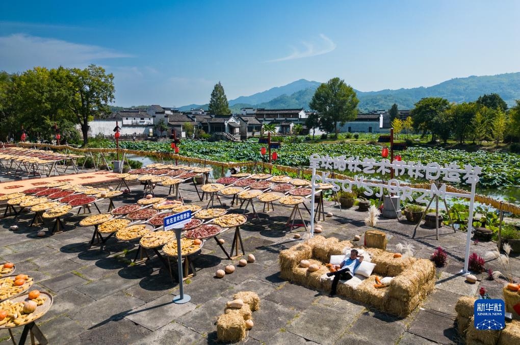 地處皖南山區(qū)的安徽省黃山市徽州區(qū)呈坎古村自古都有曬秋習(xí)俗。近年來,曬秋時節(jié),該村村民會將農(nóng)作物在村中廣場集中晾曬,構(gòu)成一幅五谷豐登的秋收畫卷,吸引不少游客前往觀賞,成為當(dāng)?shù)厍锶绽锏穆糜翁厣?/p>