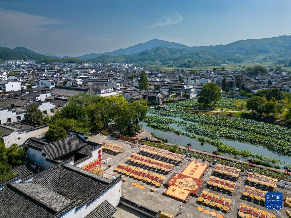 這是呈坎古村內的曬場(9月11日攝,無人機照片)。