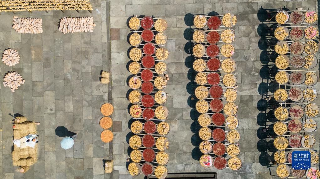 地處皖南山區(qū)的安徽省黃山市徽州區(qū)呈坎古村自古都有曬秋習俗。近年來,曬秋時節(jié),該村村民會將農作物在村中廣場集中晾曬,構成一幅五谷豐登的秋收畫卷,吸引不少游客前往觀賞,成為當?shù)厍锶绽锏穆糜翁厣?/p>