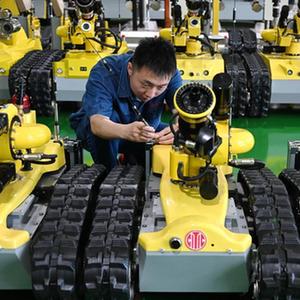 9月11日,工人在唐山國家高新技術產業開發區一家智能裝備生產企業的車間調試特種機器人設備。
