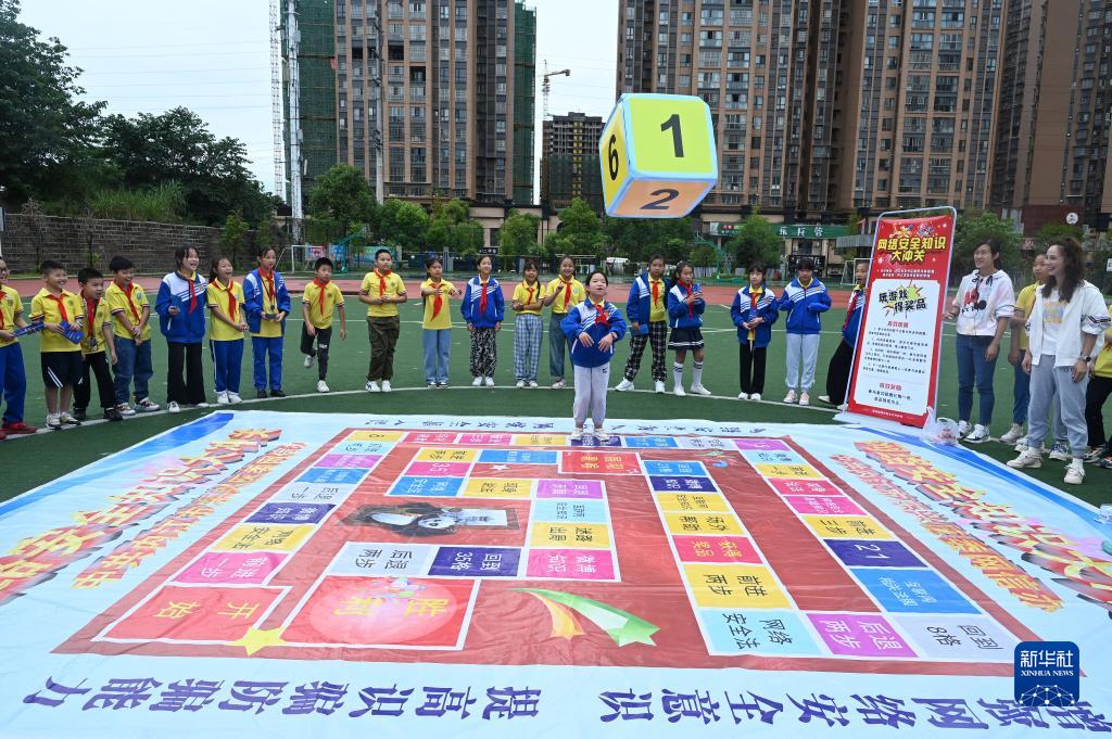 9月12日,在四川省內江市東興區陽光學校,學生參加網絡安全知識沖關互動游戲。