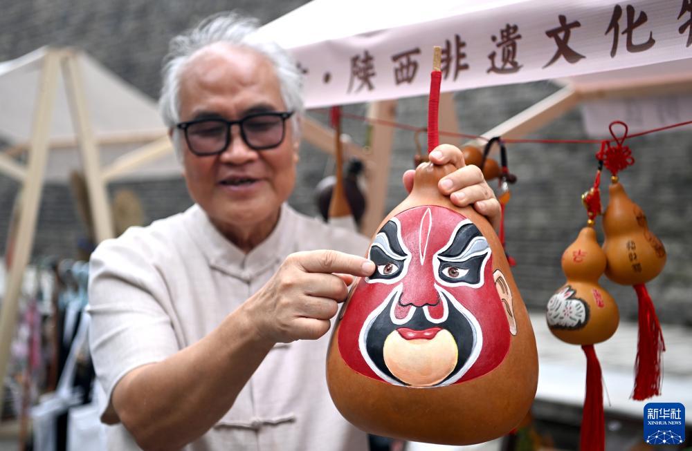 當日,陜西省西安市新城區“遇見城墻·非遺韻”非遺集市主題活動在西安城墻中山門下舉辦。秦腔、華陰老腔等特色非遺節目在永興坊戲樓前輪番表演,皮影、布藝、工藝葫蘆等二十多種非遺作品在順城巷內集中亮相,豐富市民文化生活的同時也讓游客感受到陜西非遺的獨特魅力。