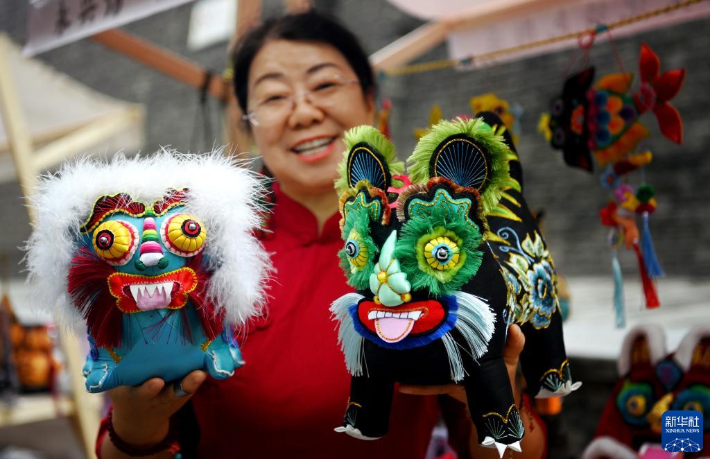 9月12日,西安市新城區(qū)“遇見城墻·非遺韻”非遺集市上,王氏布藝傳承人王海燕在展示自己的布藝作品。