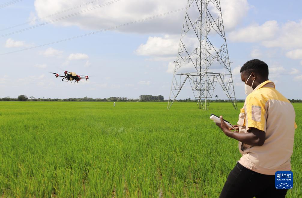 這是2021年6月2日,在烏干達(dá)卡隆古區(qū)盧卡亞鎮(zhèn)中億農(nóng)業(yè)園,作業(yè)員赫伯特·阿加巴操控植保無人機(jī)噴灑農(nóng)藥。2012年以來,中國在糧農(nóng)組織南南合作框架下向?yàn)醺蛇_(dá)派遣農(nóng)業(yè)專家和技術(shù)人員,大大促進(jìn)了當(dāng)?shù)剞r(nóng)業(yè)的發(fā)展。