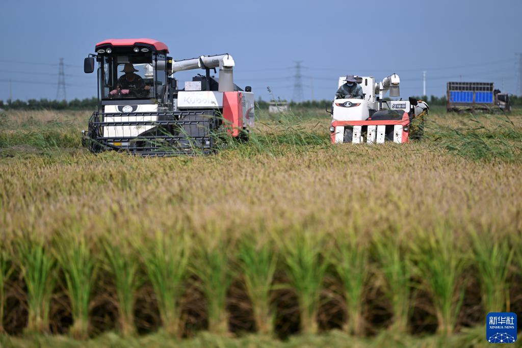 天津:水稻收割忙