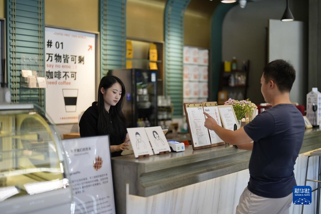 9月12日,市民在培仁歷史文化街一家咖啡廳選購咖啡。