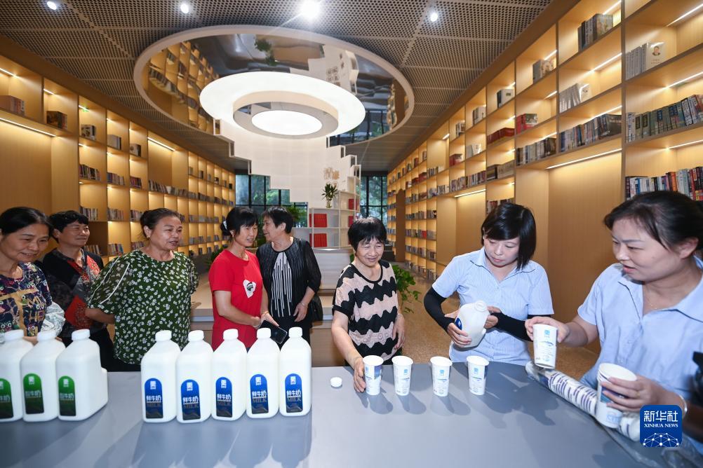 9月12日,建德市更樓街道更化社區(qū)的居民在鮮奶共富工坊的書吧內(nèi)品嘗剛生產(chǎn)出來的鮮奶。