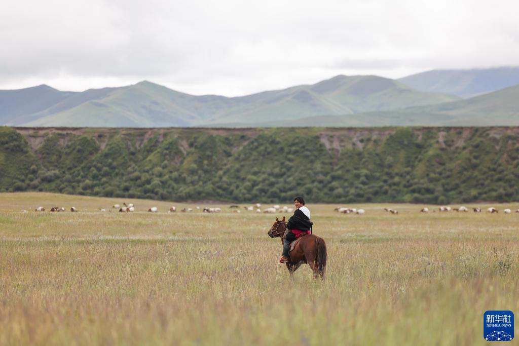 8月17日,在青海省黃南藏族自治州河南蒙古族自治縣多松鄉多松村,扎西曲培在放牧。新華社記者 邢廣利 攝