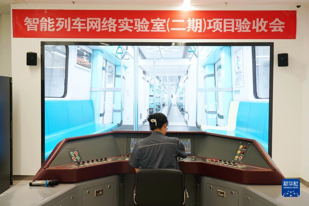 8月10日,京投裝備技術研究院的工程師通過司機操縱臺操作模擬駕駛列車。
